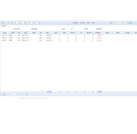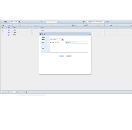 - 한 화면에서 원생의 모든 업무 처리가능